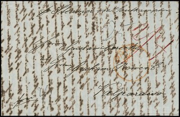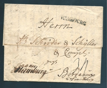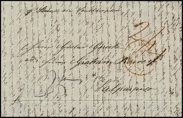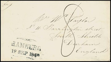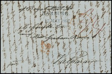 "Hamburg", 1856, Schmetterlingsstempel auf Brief "p. Royal Mail St." via England nach Valparaiso/Chile