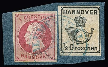 "Blumenthal", K2 auf blauem Briefstück mit besserer Kombination 1 Gr. rosa nebst 1/2 Gr. schwarz (diese rechts oben etwas berührt)