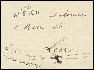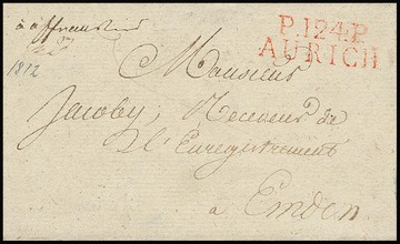 "Aurich", 1813, klarer roter L2 "P.124.P. AURICH" auf Kabinettbrief mit Inhalt aus Grossefehn