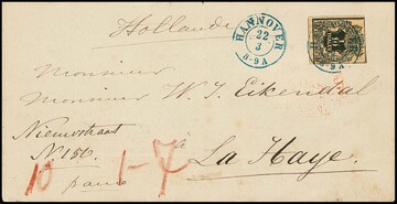 1/10 Th. schw./orange, angeschnitten, als Einzelfrankatur auf Briefvs. von Hannover nach Den Haag/Holland, Teilfranko bis zur Grenze