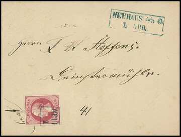 1 Gr. rosa, breitrandig, auf Brief mit sehr seltener Vorausentwertung durch Ra2 "Neuhaus a.d.O." nach Deistermühle, Befund Berger, tadellos