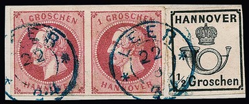 1 Gr. rosa im Paar in besserer Kombination mit 1/2 Gr. schwarz auf Kabinettbriefstück mit K2 "Leer", sign. Pröschold