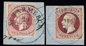 1 Gr. rosa, lilarosa, zwei Luxusbriefstücke mit K2 "Scharmbeck" bzw. "Polle", "c" sign. Berger