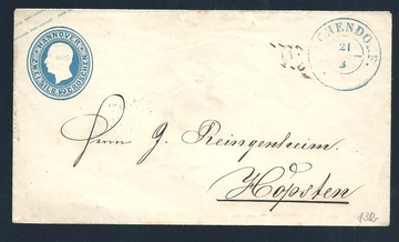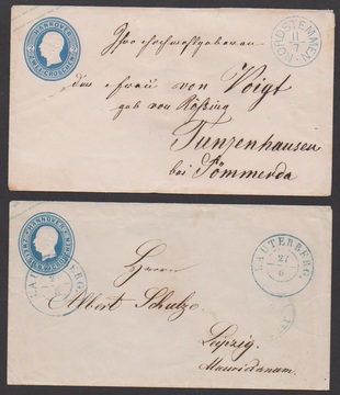 Ganzsachen 2 Sgr. blau (K2 "Lauterberg") und 2 Gr. blau (K1 "Nordstemmen"), zwei gebrauchte Prachtcouverts. Mi. 390,-