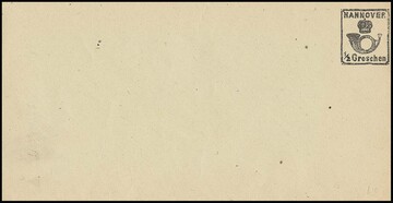 Stadtpost-Ganzsache 1/2 Gr. schwarz, Nachdruck einer nicht erschienenen Ganzsache mit Wertstempel in Zeichnung der Mi.-Nr. 17 (unten Besonderheit "eingedruckte Randlinie"), unbekannter Herkunft und unbekannten Datums, da auch in der Literatur nicht verzeichnet