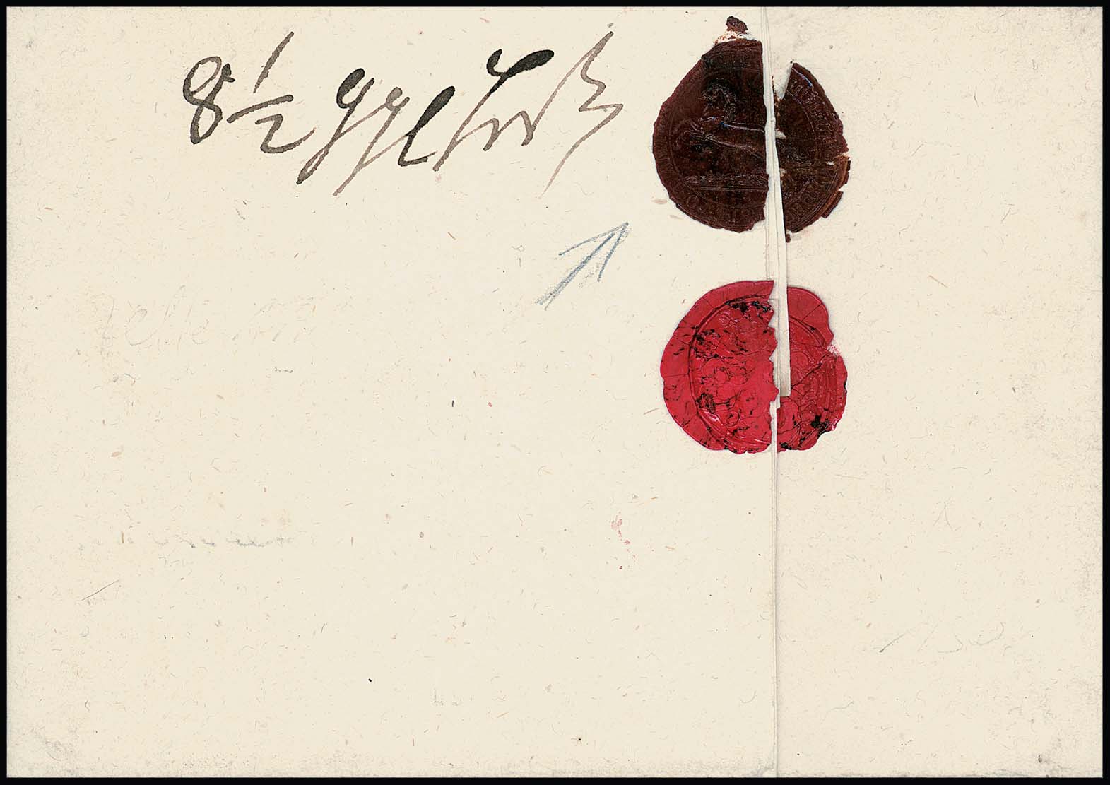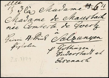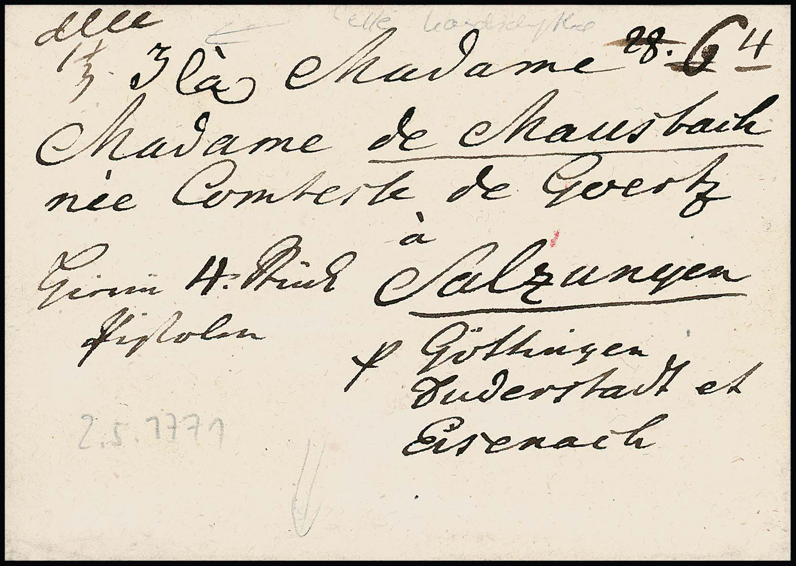 "Celle", 1771, hs. Aufgabe "d Cell" auf Paketbrief "hierin 4 Stück Pistolen" nach Salzungen, rs. sehr frühes Postamts-Siegel von Celle mit Portoberechnung