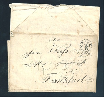 "Celle", K1 1842 auf Brief nach Frankfurt, innen hübscher Ansichtskarten-Vorläufer, Briefbogen mit Ansicht "Schloss zu Celle"