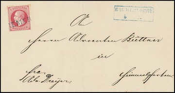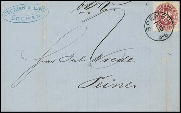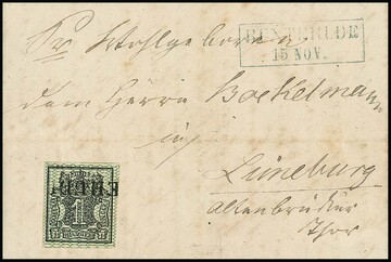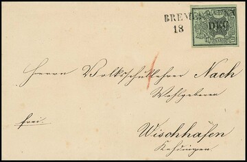 "Bremerhaven", besserer schwarzer L2 klar auf Brief mit 1 Ggr. (bereits mit kleiner Papierrunzel aufgeklebt)