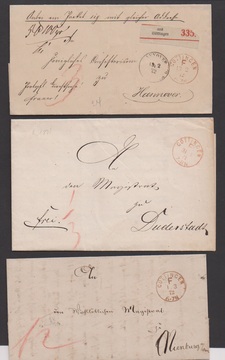"Göttingen", 1868-1873, elf Briefe nur mit dem Franko-K1 in rot bzw. violett, versch. Portoraten ab "1/3" Groschen (Drucksache) bis "5" Gr. (Paketbegl.)