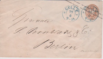 "Celle", blauer K2 klar nachverw. auf Preußen-Ganzsache 3 Sgr. (min. Spieß), gut sign. Flemming