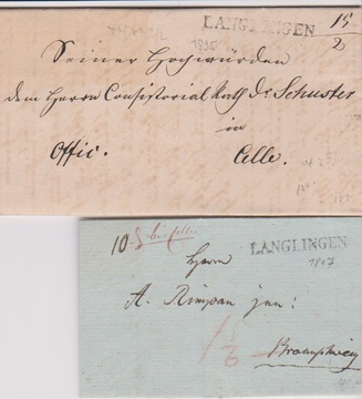 "Langlingen", 1817/35, beide vorphil. L1 je klar auf Briefen mit Inhalt