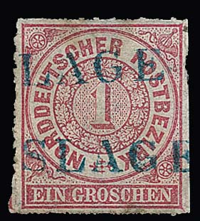 "Menslage", nachverwendet sehr seltener und bei Feuser unbekannter blauer L1 klar auf NDP 1 Gr. (kl. Mgl.), sign. Spalink