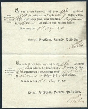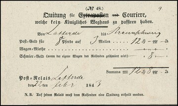 "Lafferde", 1843, "Post-Relais", seltener früher Extrapostschein für acht Pferde nach Braunschweig