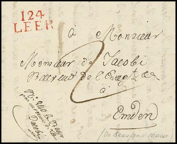 "Leer", 1812, klarer roter L2 "P.124.P. LEER" auf Brief mit Inhalt nach Holland