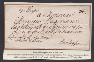 "Leese", 1794, erster Ortsdruck-Postschein, W1, sowie frühe hs. Aufgabe "de Leese" auf Brief 1767