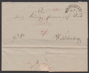 "Lafferde", (1838), ungewöhnliche hs. Aufgabe in Verbindung mit HK "Wolfenbüttel" auf Brief nach Wohldenberg