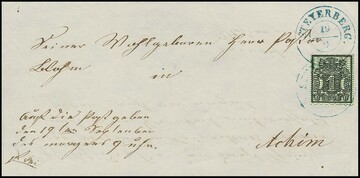 "Suderburg", besserer schwarzer L1 der Briefsammlung als Teilabschlag auf 3 Pfge. karmin, grauschwarz genetzt, leichte Mgl., Fotoexp. Berger