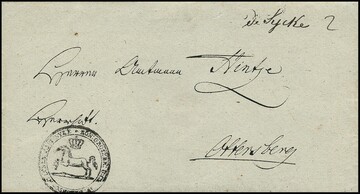 "Steyerberg", besserer K2 auf zwei Kabinettbriefen 1 Ggr. (Nr. 2a und 9), ferner auf Ganzsache (mit 3 Pfg. Botenlohn), sowie zwei unfrank. Briefen