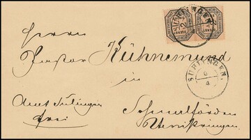 "Ringelheim", blauer Zier-K2 auf Kabinettbriefstück 1 Gr. rosa, auf loser 1 Gr., sowie in schwarz nachverwendet auf Trauer-Drucksache mit NDP 1 Gr. als interessante Fehlfrankatur (1/3 Gr. waren ausreichend)