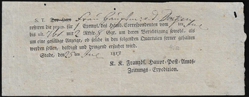 "Stade", 1813, seltener Ortsdruck-Zeitungsschein "K.K. Französ. Haupt-Post-Amts-Zeitungs-Expedition", dazu Ortsdruck-Postschein 1805 "königl. und churfürstl. Post-Amt"