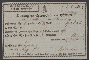 "Syke", blauer K2 auf vier Kabinettbriefen je nach Freudenberg bei Bassum, mit 1 Ggr., 1/30 Th. schw./rosa im Inlands-Aufbrauch, 3 Gr. braun (seltene 3. Gewichtsstufe), sowie nachverwendet auf Brief Preußen 1 Sgr.