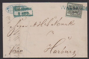 "Walsrode", blauer L1 als Entwertung, Ra2 nebengesetzt, auf Faltbrief mit perfekter 1 Ggr.