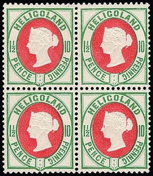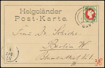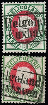 10 Pfg., die beiden letzten Auflagen (kl. Mängel) je mit hierauf besserem Ra2 "Aus Helgoland über Cuxhaven"