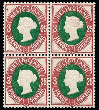 25 Pfg. lilakarmin/grün im Viererblock aus der linken oberen Bogenecke, unteres Paar postfrisch. Mi. lose 110,- +