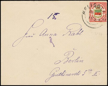 10 Pfg. hellgrün/rot einzeln auf zwei versch. Ansichtskarten-Formularen (einmal leichte Gebrauchsspuren) 1889, einmal sign. Schmidt. Mi. 240,-