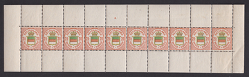 5 Mk., die beiden Plattenfehler, "Punkt in der linken unteren Ecke" (Feld 41, sign. Engel), sowie "weißer Punkt in der oberen Rahmenlinie" (Feld 45, Fotoexp. C. Brettl) je als ungebrauchte Unterrandstücke, selten!