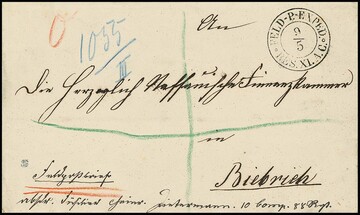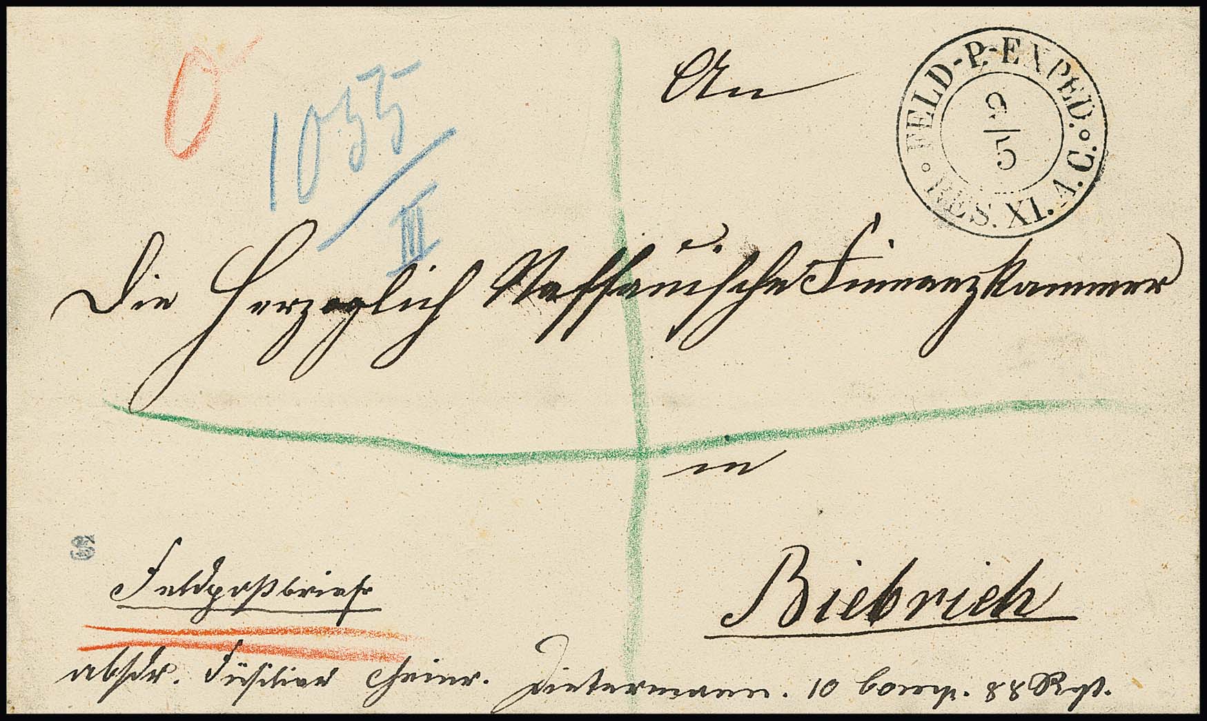 1871, 6.5., guter K2 "Feld-P.-Exp. Res. XI. A.C." auf Damencouvert (rs. Vignetten-Zudruck von Paris) nach Gladenbach, sowie auf Brief vom 9.5. nach Biebrich