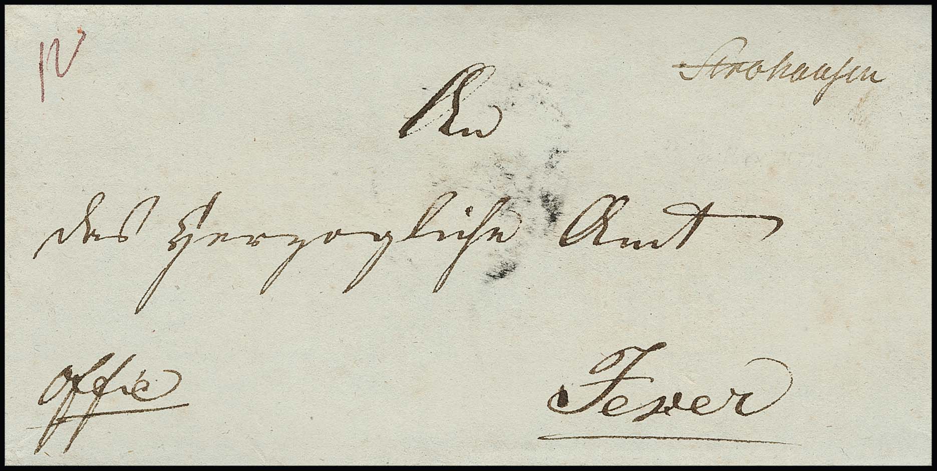 "Strohausen", 1824, seltene frühe handschriftliche Briefsammlungsaufgabe auf datierbarem Brief, sowie drei Briefe mit vorphil. L1