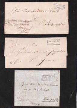 "Oldenburg", ab 1851-67, 22 Briefe mit versch. Stempeln, u.a. Neben-L1 "Franco", interessante Taxen