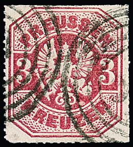 3 Kr. karmin, nicht ganz perfektes Exemplar mit nachverw. taxischem NS "377" der Werrabahn, sign. Kastaun