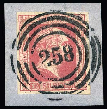 1 Sgr. karmin, zwei Pracht-/Kabinett-Briefstücke, letzteres zentr. NS "258", sowie vom rechten Bogenrand auf dünnem Papier. Mi. 270,-