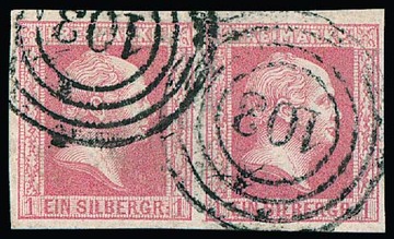 1 Sgr. rosa, Kabinettpaar (schöne Buchdruckprägung) mit NS "103" (Berlin), sign. Banker. Mi. 120,-