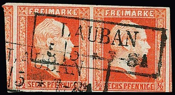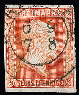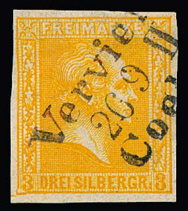 3 Sgr. orange mit hierauf seltener Nummernstempel-Entwertung (wahrscheinlich "1745", winzig punkthell). Mi. 500,-
