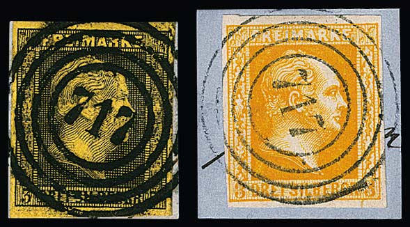 "674" (Idar) auf Prachtpaar 1 Sgr., sowie auf etwas ber. 2, 3 und 1 Sgr.