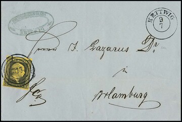 "674" nebst Ra2 "Idar" sehr klar auf Brief 1 Sgr. (links "Lupenrand"). Seltener NS aus dem Fürstentum Birkenfeld, Feuser 400,-