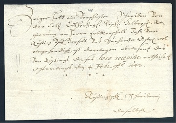 "Osterwieck", (Reg.-Bez. Merseburg), 1642, sehr frühe handschriftliche "loco recepisse" der "Schreiberey daselbst"