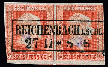 "Reichenbach i.Schl.", idealer Ra2 auf Paar 1/2 Sgr. (etwas ber.), Mi. 450,-