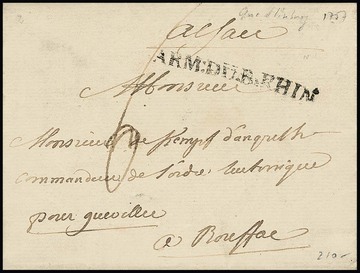 "Quedlinburg", 1757, seltener französ. Armeepostbrief mit Inhalt, L1 "ARM:DU.RHIN"