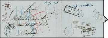 Incoming-Mail, 1862, Brief aus Montevideo/Uruguay via Southampton nach Cöln, der Empfänger mußte "17" Sgr. bezahlen