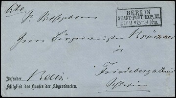 Fünf Belege mit besseren "Berlin"-Stempeln: KHBW 19b, 35a, 109 und 271a, je auf Preußen, sowie KHBW 355 nachverw. auf NDP
