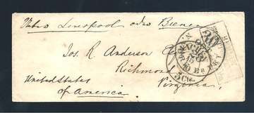 "Berlin Stadtpost-Exp. I", Ra3 auf Couvert via Aachen (K2 "Aachen 5 Cts.") nach Richmond/Virginia (1863), Südstaaten der USA