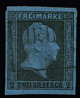 2 Sgr. schw./blau, zwei Kabinettstücke je mit Ortsstempel-Entwertung durch Ra2 "Herborn", Mi. 240,-