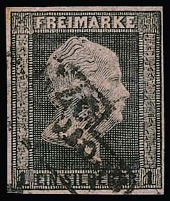 1 Sgr. schw./rosa, gut gerandet, etwas hell, mit seltener alleiniger Entwertung durch ausländischen Transitstempel, Fotoexp. Brettl