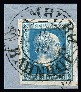 2 Sgr. blau, meist sehr breitrandig, auf Kabinettbriefstück mit K2 "Hamburg Bahnhof"