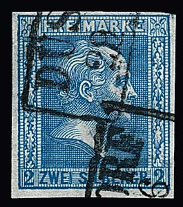 2 Sgr. blau, Plattenfehler "schräges I" (Retusche) tadellos gest. Mi. 400,-