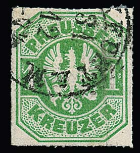 Kreuzer, gestempelte Kabinettserie, je sign. Meier, und zusätzlich 1 Kr. grün mit Letzttags-K1 von Frankfurt, 31.12. Mi. 375,- ++